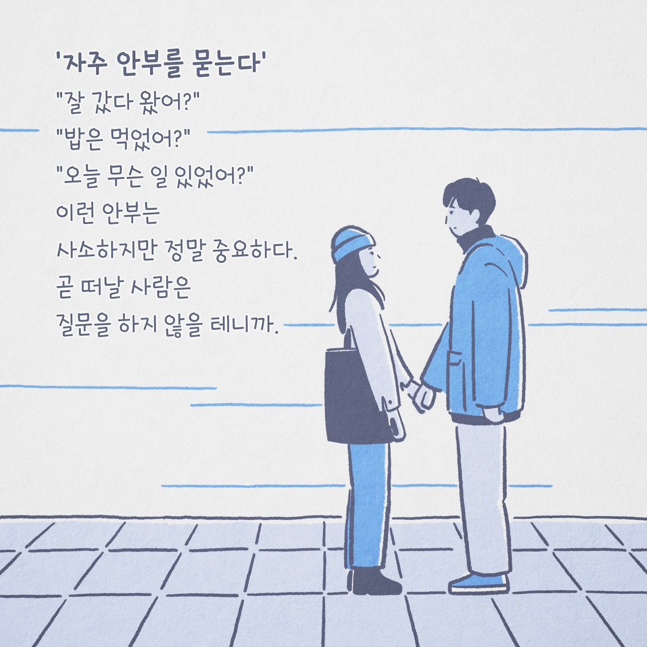 상대가 준 마음에 대해서 당연히 여기지 않고, 익숙해 하지 않는 마음, 사소한 것이라도 그것을 챙겨준 상대의 사소함을 알아주는 마음. 마음을 건네준 상대의 기대만큼이나 행복해할 수 있는 마음.